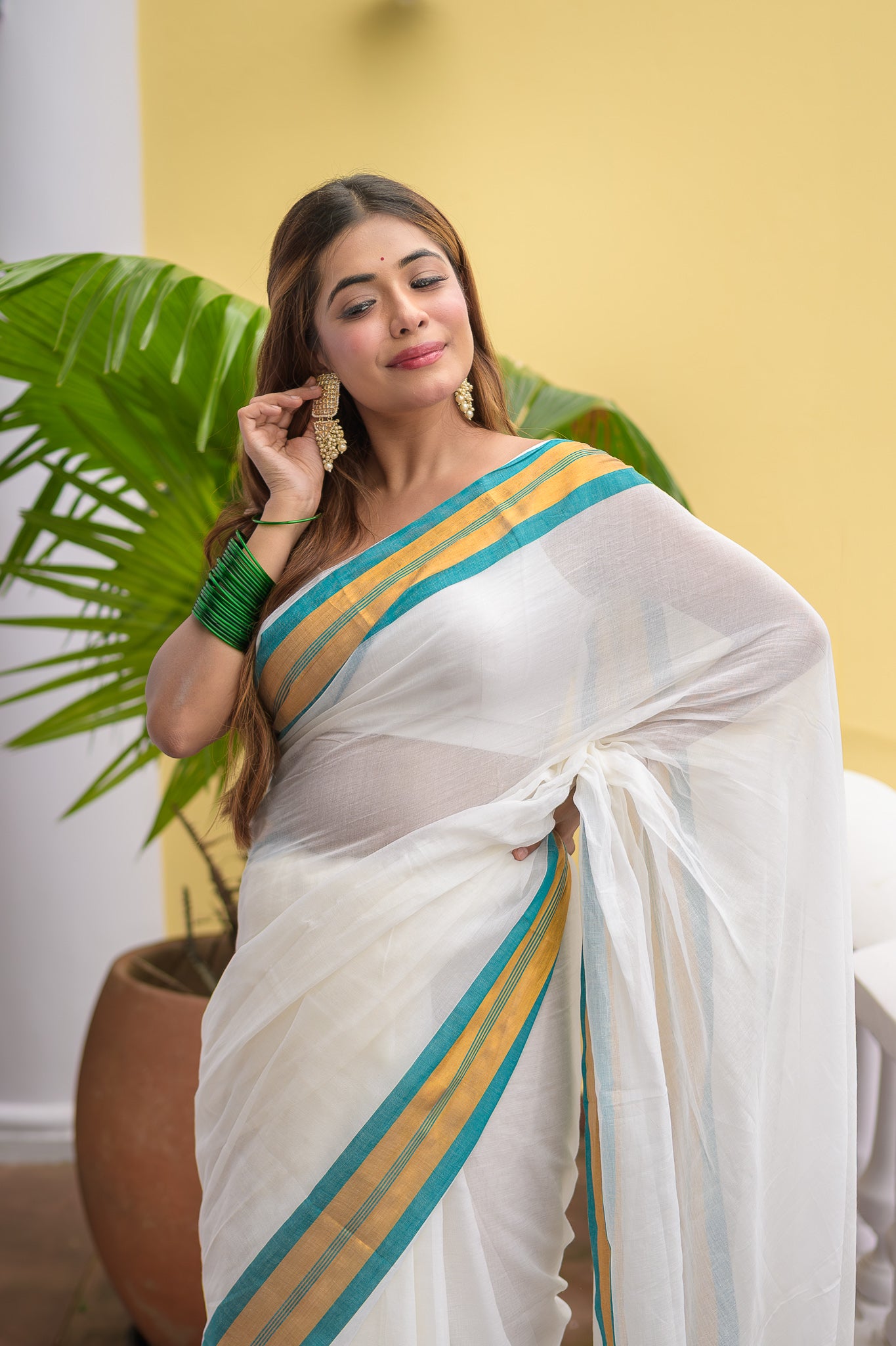 White Mulmul Cotton Saree